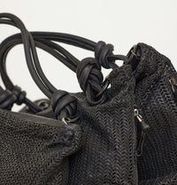 The bag comes with two detachable straps: a short shoulder strap featuring a knotted design element, and a long adjustable strap – allowing you to choose how to carry it, on the shoulder or crossbody.