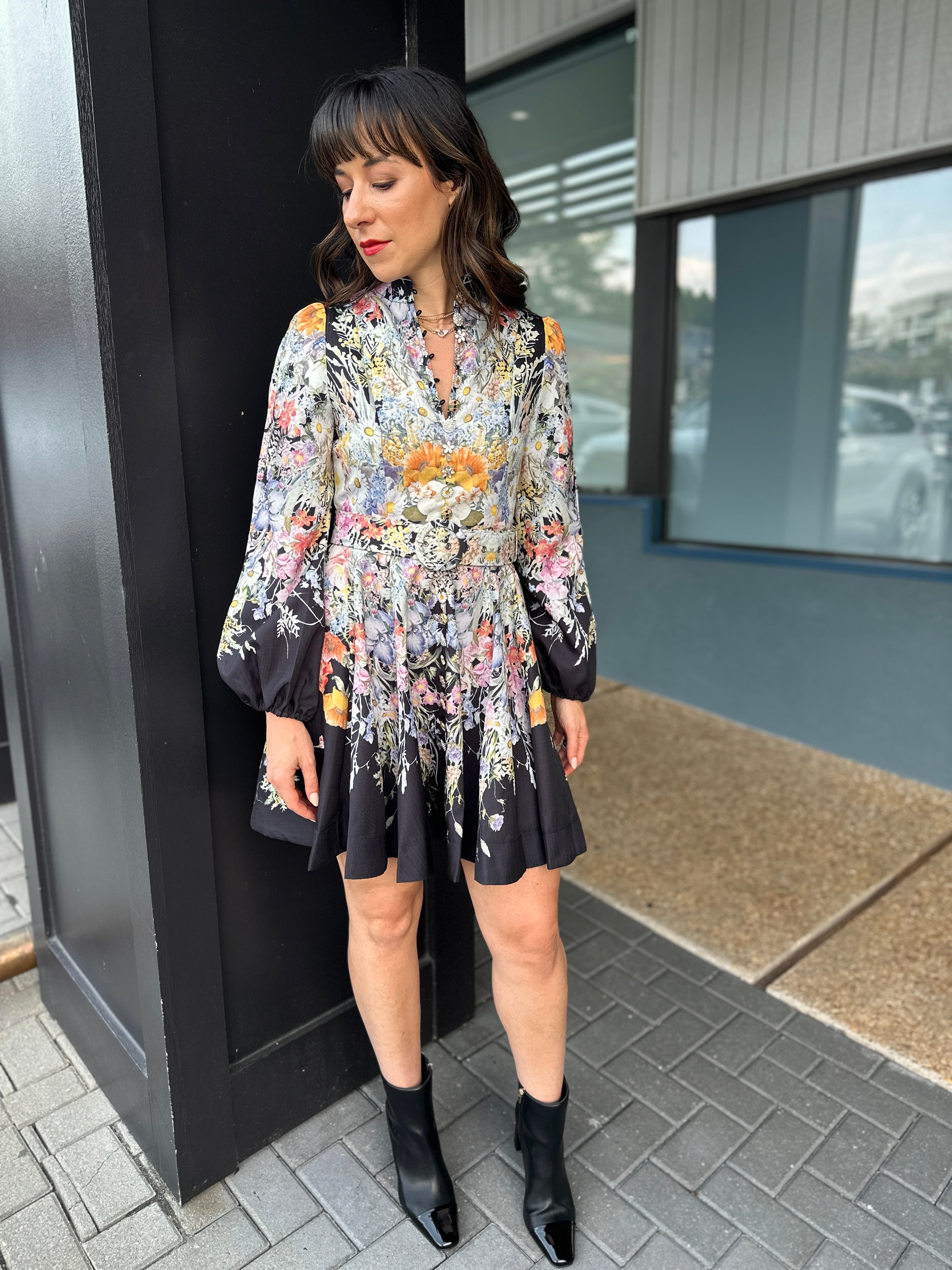 Floral Belted Swing Dress