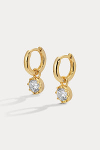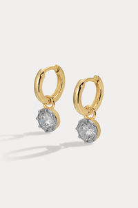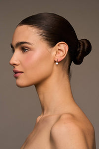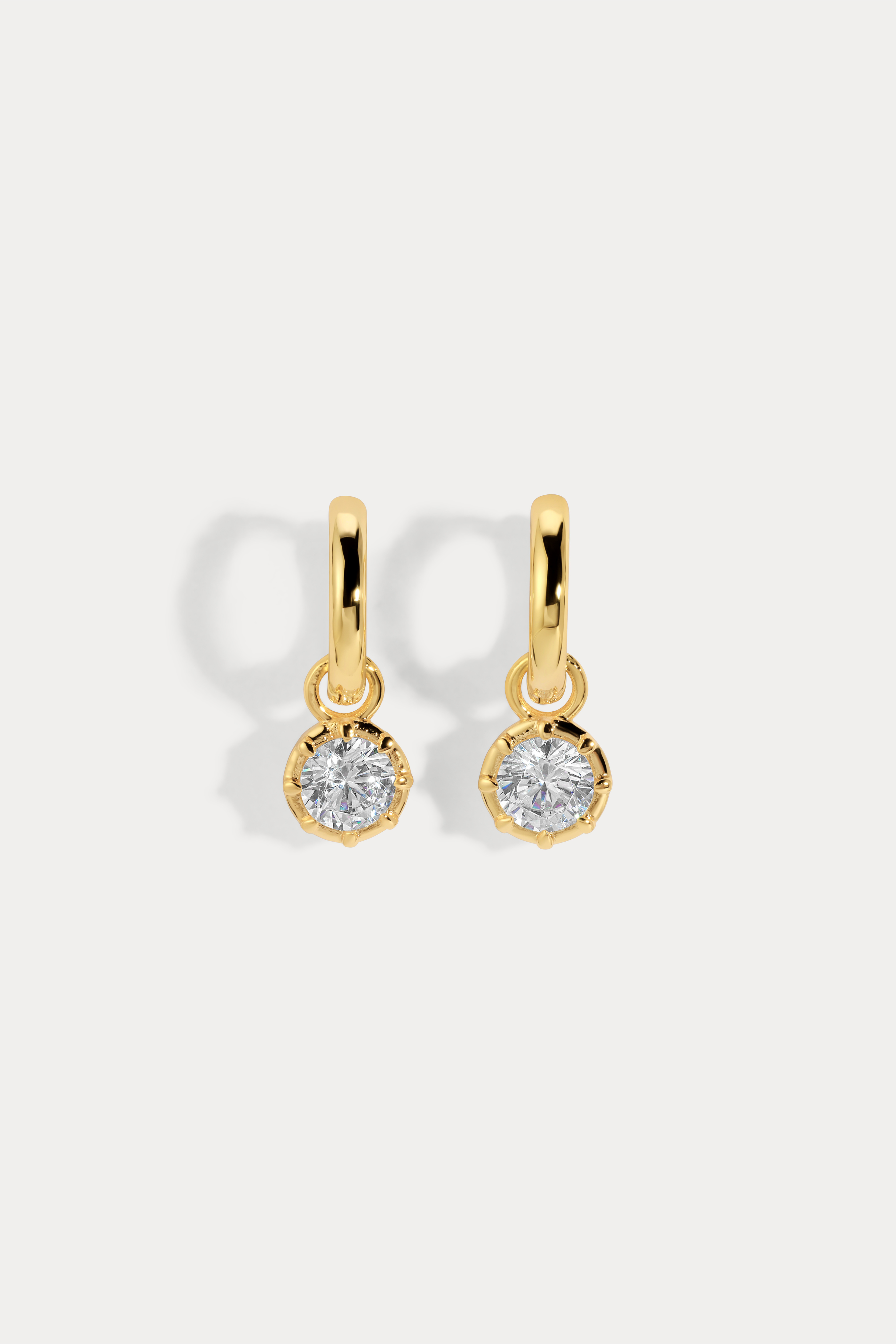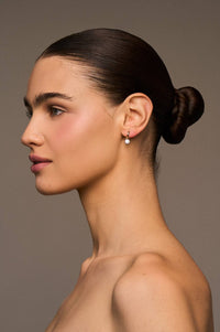 A modern bezel set charm hoop that pairs clean design with luminous sparkle. Layer them into your ear stack for an effortless fine jewelry look.