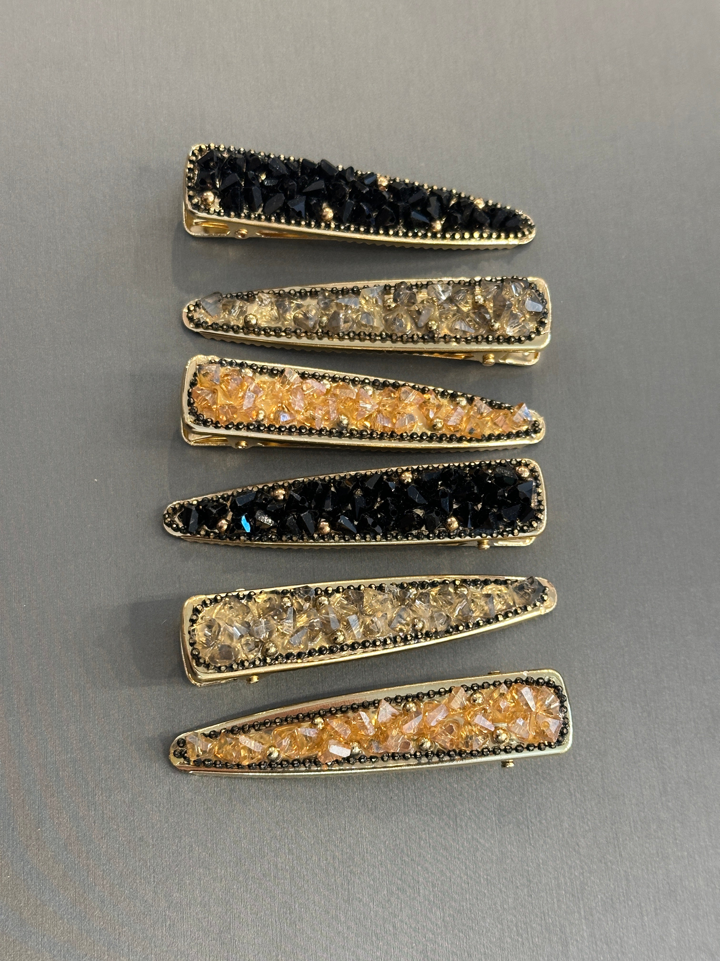 Create multiple festive looks with our Hair Pin featuring scattered water crystals. Add a touch of sparkle and elegance to your hair for any occasion. This versatile pin gives you endless styling options, making it a must-have accessory for any fashion-forward individual.