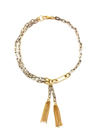 Bold yet balanced, this mixed metal tassel necklace is made for those who move with confidence.