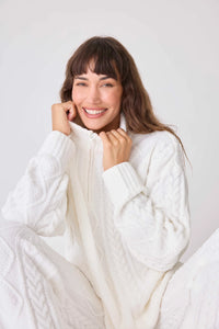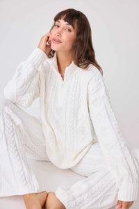 Experience the ultimate comfort in this chenille cozy cable lounge set. Designed with a rich knit featuring a classic cable texture, this pullover showcases a luxurious feel that adds a touch of luxury to your everyday outfit. It's perfect for staying warm on cool days or for lounging at home, effortlessly combining cozy comfort and style.