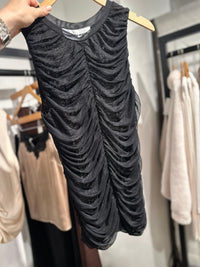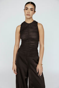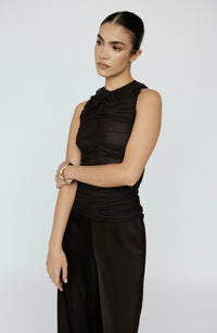 A modern essential, this tank is crafted from sheer mesh with delicate ruching that creates texture and dimension. Designed for versatility, it can be styled with a bralette for a bold look or layered with the included camisole for added coverage.