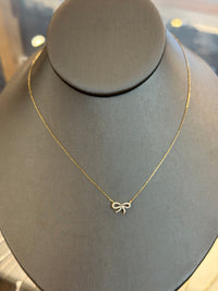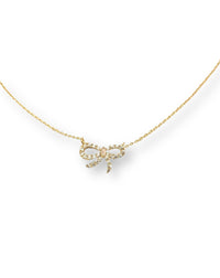 Bella petite bow short necklace in hand set high quality CZ, Gold finish