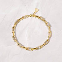 Dainty paperclip chain bracelet featuring alternating pavé links.