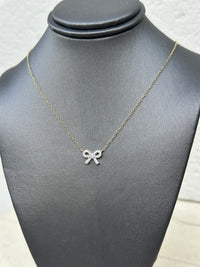 Ribbon Bow Lab-Created Diamond Charm Necklace in 14K Gold