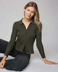 Georgie Two Zip Sweater in Green Spruce