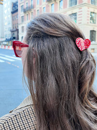 Mini Paisley Heart Claw Clip — a petite take on our beloved hand-painted original. Featuring our signature paisley heart motif in two bold colorways (Red or White/Black), this small-but-mighty clip is perfect for half-up styles, fine hair, or adding a sweet, subtle pop to your everyday look.