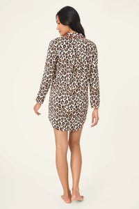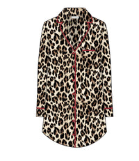 Unwind on the wild side in this modal jersey nightshirt, patterned in leopard spots. Designed with a button-down front and notch collar trimmed in red piping, it’s a playful piece for nights that call for comfort with a fierce twist.