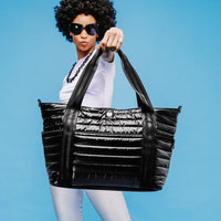 Fashion and function are at a crossroads where a luxury tote meets modern organization for the jetsetter living a life on the fly...ready for take off? We have you covered with a hidden trolley slip and pockets galore...