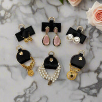 With 3 earring stays, 3 necklace holders, and 6 removable clear front pouches included, this soft-sided case brings effortless elegance to your travel routine - and keeps your sparkle sorted and easy to see wherever you go.