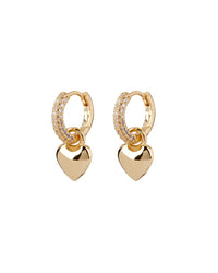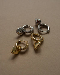 - Pair of pavè covered huggies with a metal puffy heart charm