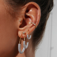 Earring internal diameter 18mm (0.71"). Crystal curved hoop thickness 3mm (0.12"). Curved hoop post earrings