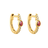 A teardrop-shaped gemstone crowns the zirconia-etched hoop and leaves no doubt about your style regency.