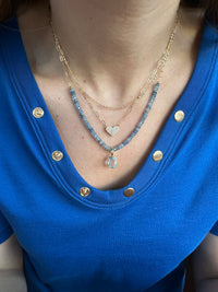 14k gold filled paperclip chain with a center, eye-catching, pavé cz heart pendant.