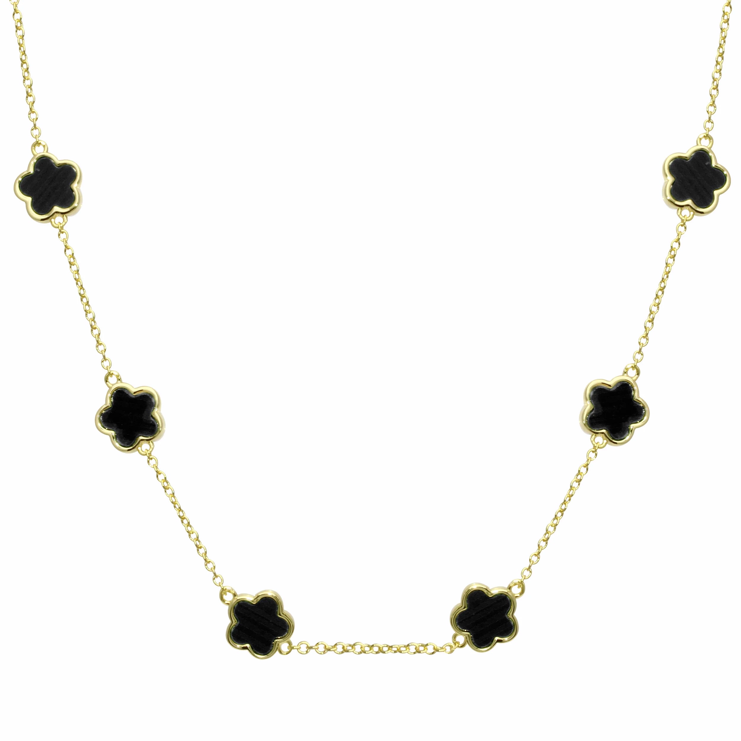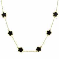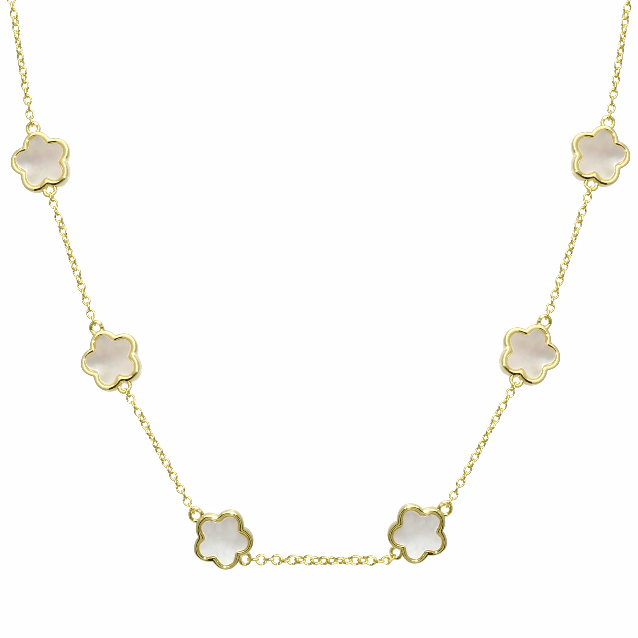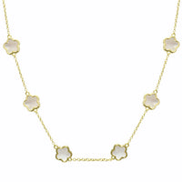 One of our favorite classics, this adjustable golden chain delivers a subtle pop of color. Easy to style alone or with others. This gorgeous necklace features six stone flowers. It is perfect for everyday layering, and makes a great gift!