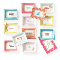 Clever quotes are front and center in this set of 12 mini porcelain trays. Lovely as decorative accents or a place to store small items, the designs are bright, colorful, and finished with a shimmering gold outline.