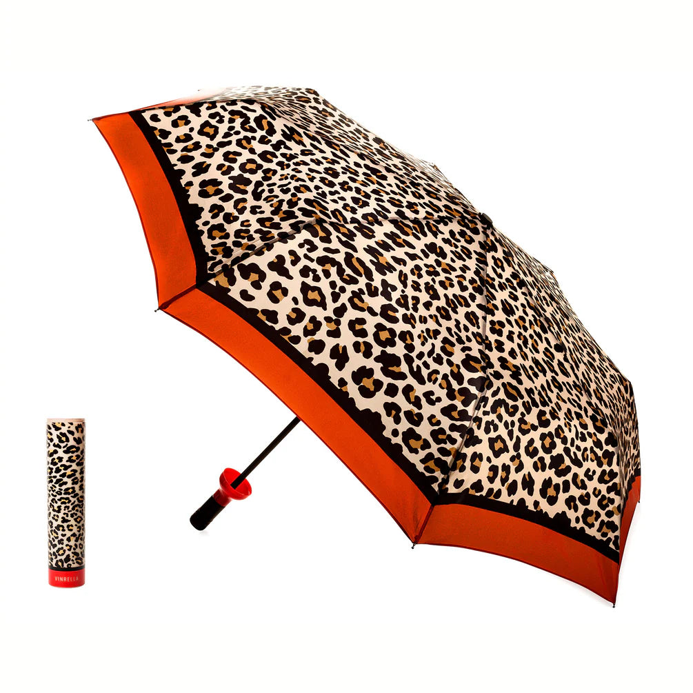 Our Leopard Print Umbrella in Wine Bottle is for the fashionista who wants to carry a reminder that her personal power is hers alone. All Vinrella wine bottle umbrellas have a no-drip design to seal your wet umbrella in the bottle and protect your purse, backpack or briefcase.