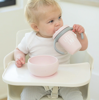 This silicone suction bowl was designed with an occupational therapist to curve in all the right places. The shape encourages self-feeding by offering a higher bowl-to-mouth success rate for early feeders. The sayings are hilarious, but the suction is serious.